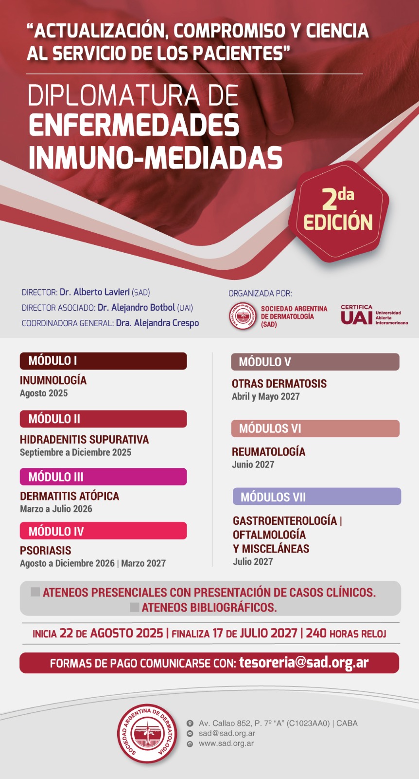 Tenemos el agrado de invitarlos a participar del proyecto dermatológico más completo y abarcativo en el abordaje de las Enfermedades Inmuno-Mediadas.