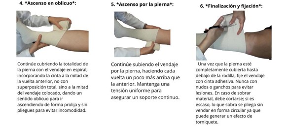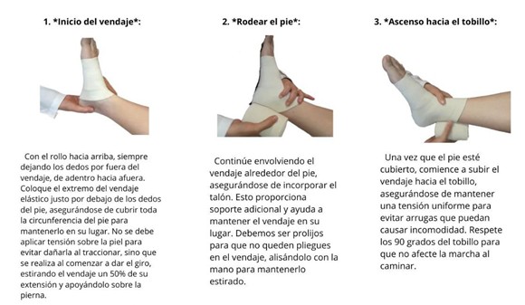 A continuación, podrá ver la correcta colocación de la venda elástica: